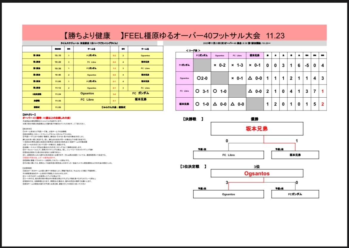 大会案内 過去の大会 【勝ちより健康🐡】FEEL橿原ゆるオーバー40フットサル大会